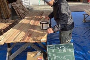新築工事が始まりました 地盤改良工事が終わり、基礎工事に入っています 工房でも木材に防蟻処理などを進めています