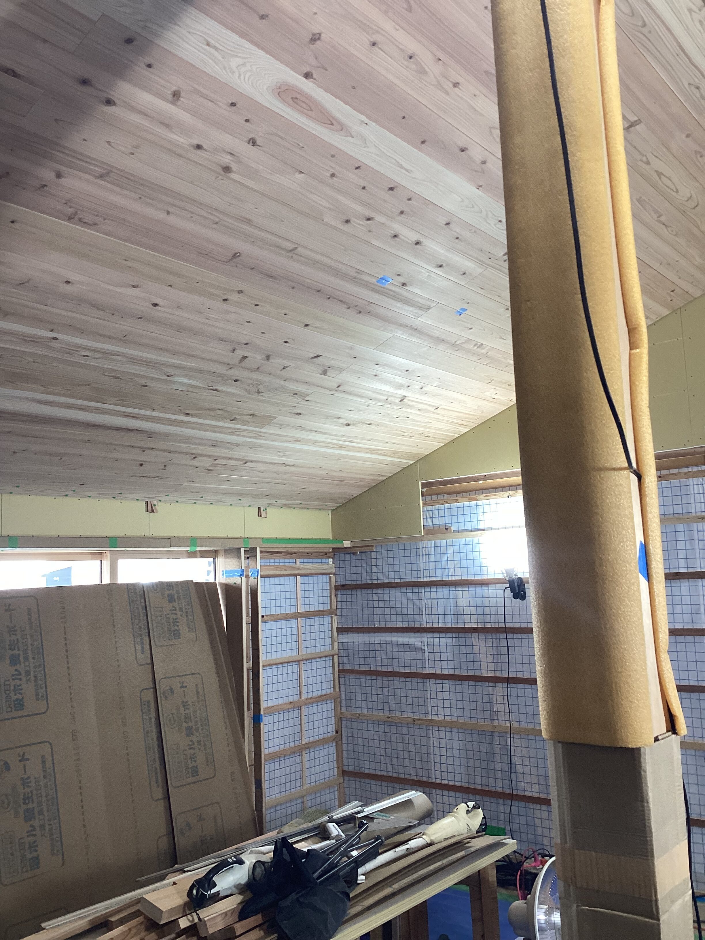 プログが中々送れない石本です。家の天井を張っています。